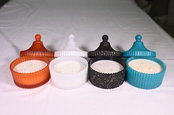 SpecificationsCandle Details:Wax Type: 100% Natural Soy Wax Crystal Jar Details:Material: Premium glass with intricate crystal-like texture Size Options: Small: 6 oz (Approx. 3″ H x 3″ W) Features: Elegant crystal jar creates a mesmerizing glow when lit Care Instructions: Trim wick to 1/4 inch before each burn. |